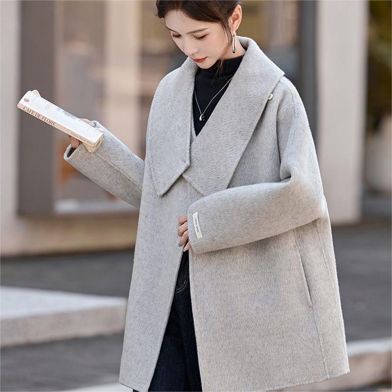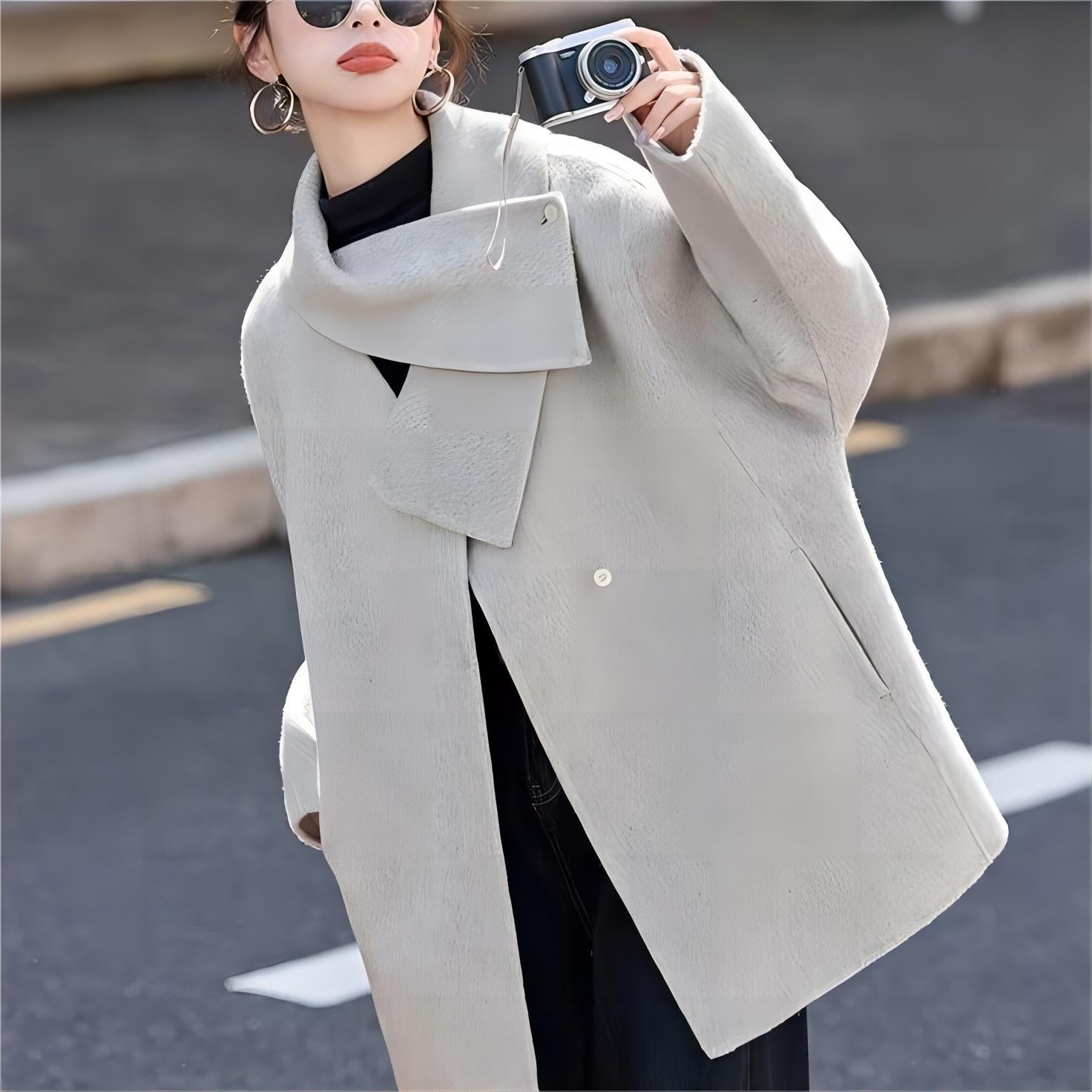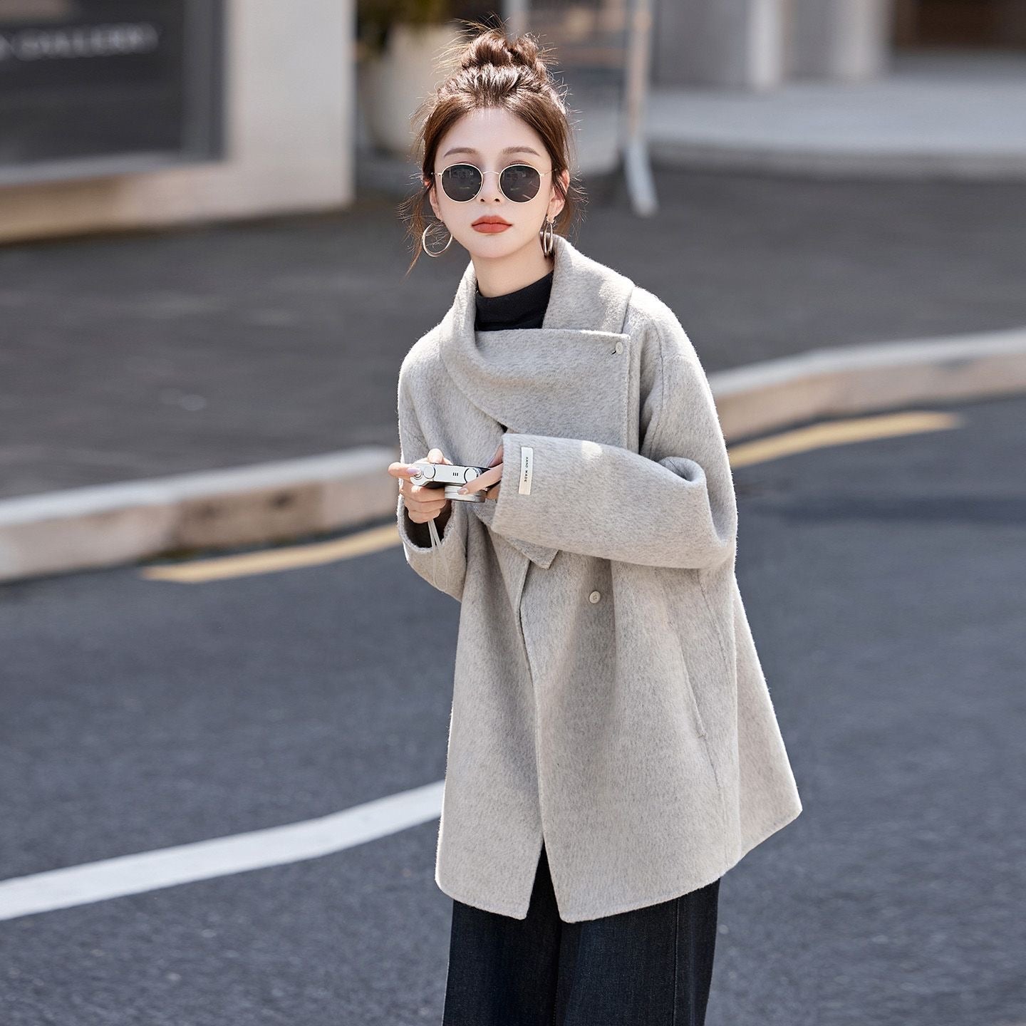 上質なウール素材と、ゆったりとしたシルエットが、上品で気高い雰囲気を醸し出します。✨ たち襟のデザインが首元をすっきりと見せ、どんなスタイルにも映える、大人の女性のための一枚です。💕 秋冬の装いに、しなやかな気品をプラス。💼 |