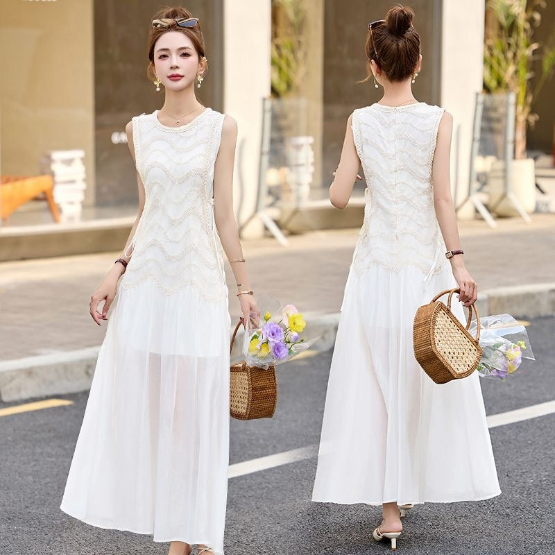 ✨ 上品なホワイトベースに、繊細なレースパネルが美しいワンピース |
