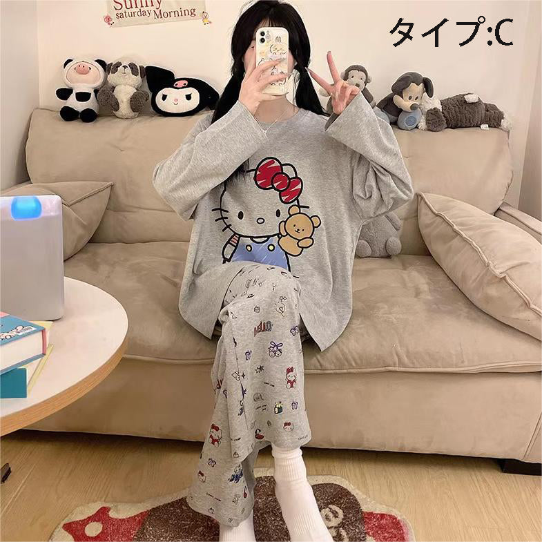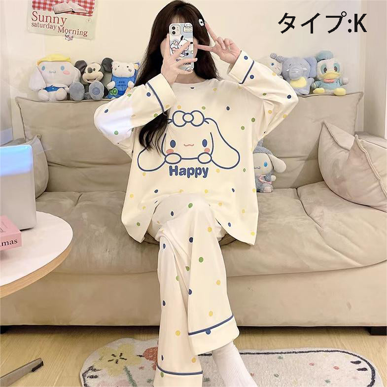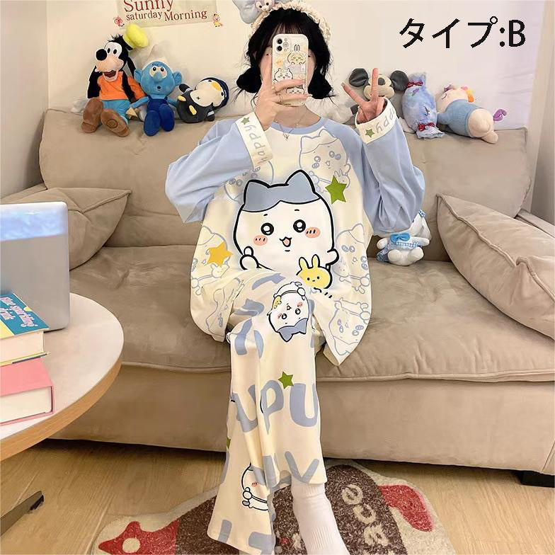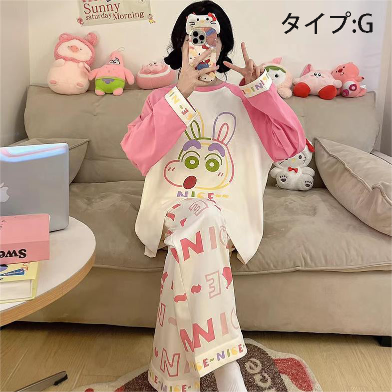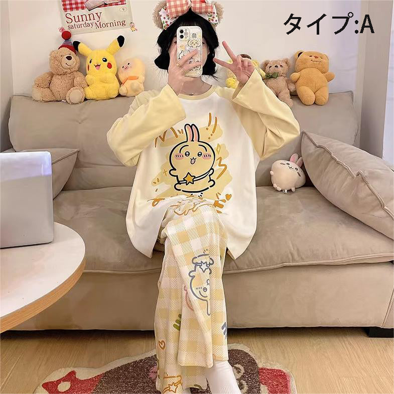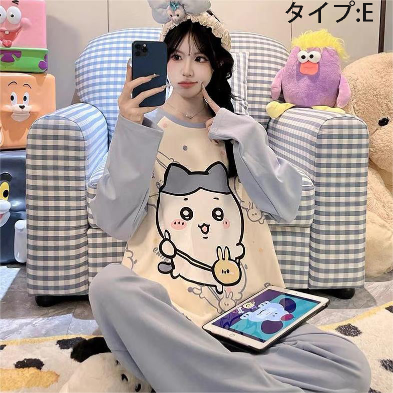 「ゆるかわ」なアニメキャラプリントがとっても可愛い!👚👖 肌触りサラサラの綿100%素材で、心地よい着心地です✨ 部屋着にもお出かけ着にもなる、レディースセットアップ!💕 |