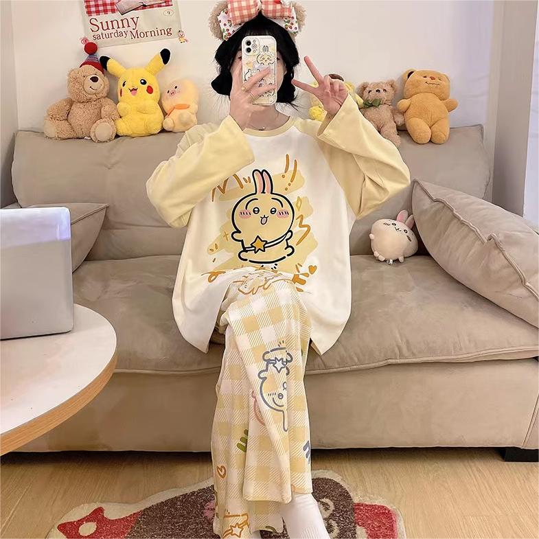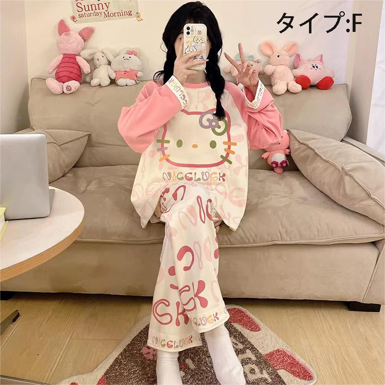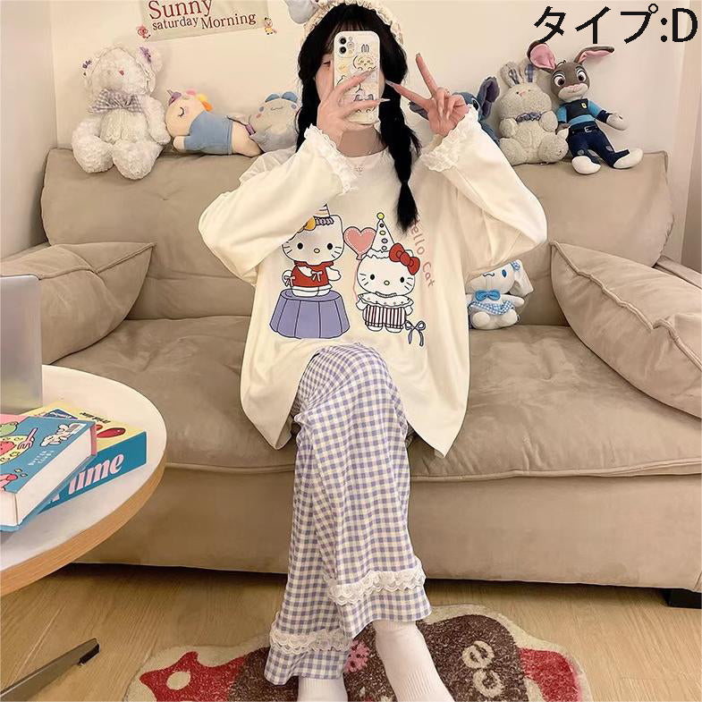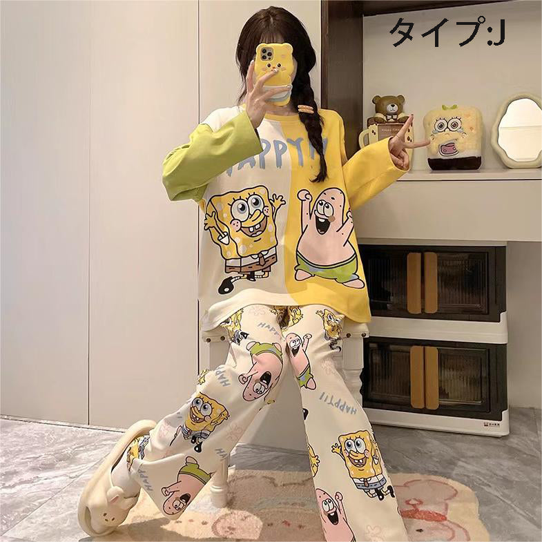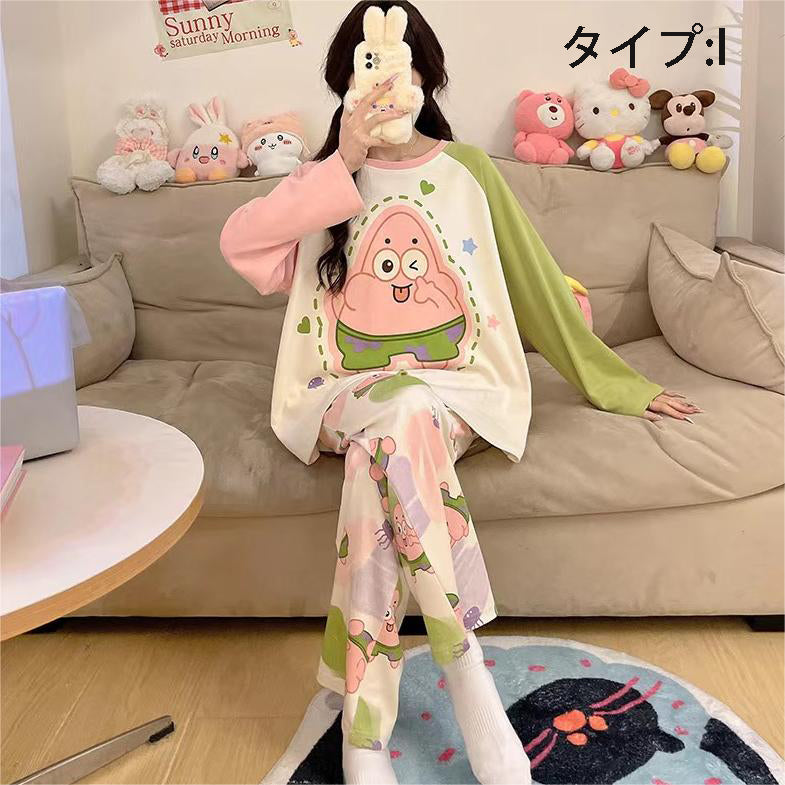 「ゆるかわ」なアニメキャラプリントがとっても可愛い!👚👖 肌触りサラサラの綿100%素材で、心地よい着心地です✨ 部屋着にもお出かけ着にもなる、レディースセットアップ!💕 |