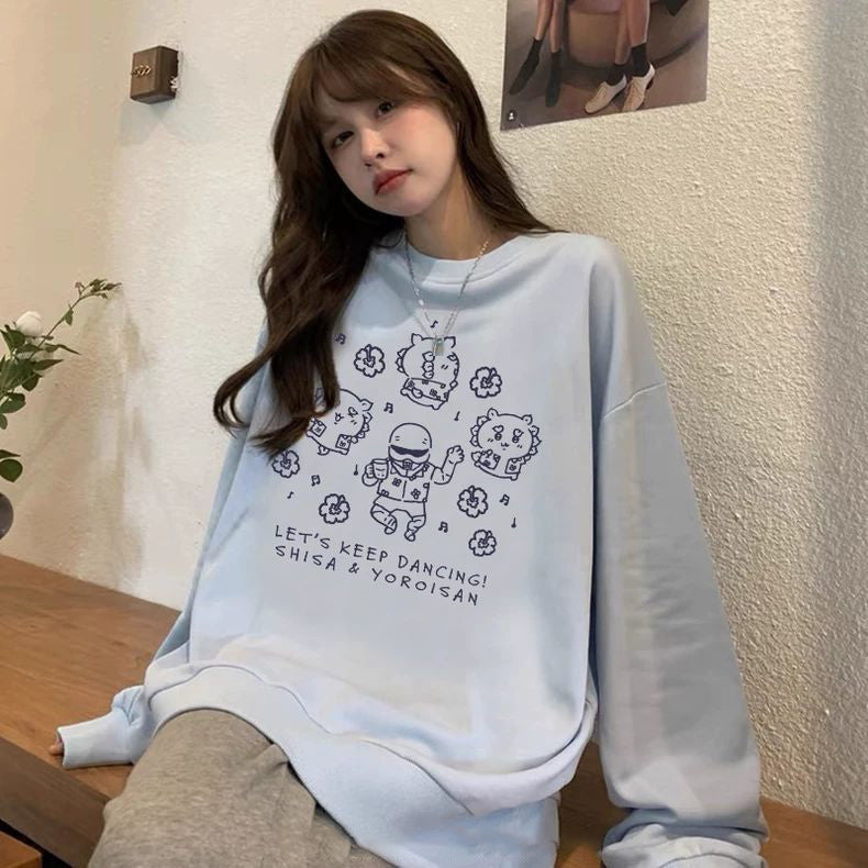 ゆるかわいいキャラクターたちが楽しそうに踊る姿がプリントされた長袖スウェットです🎀 |