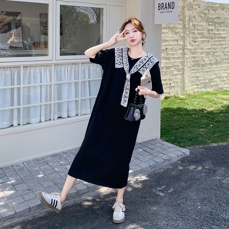 💎 上質レースと生地の贅沢なミックス! ⚓ モダンなセーラー襟が印象的! 💃 着るだけで気品とスタイルをアップ! |
