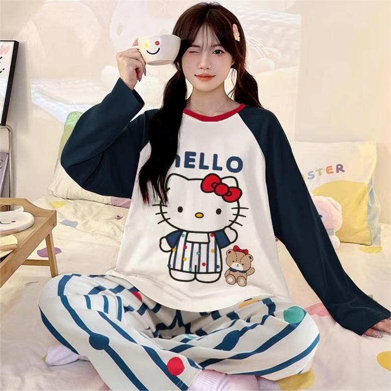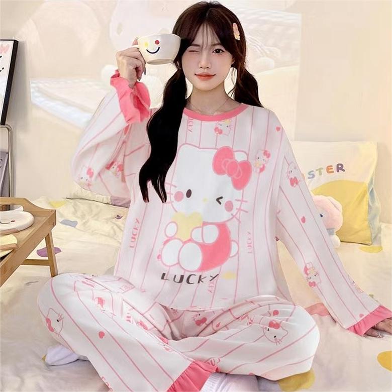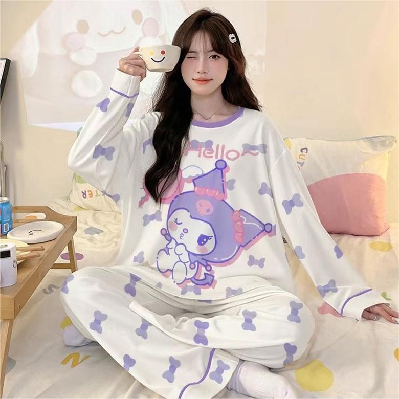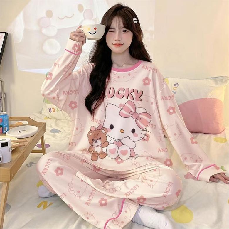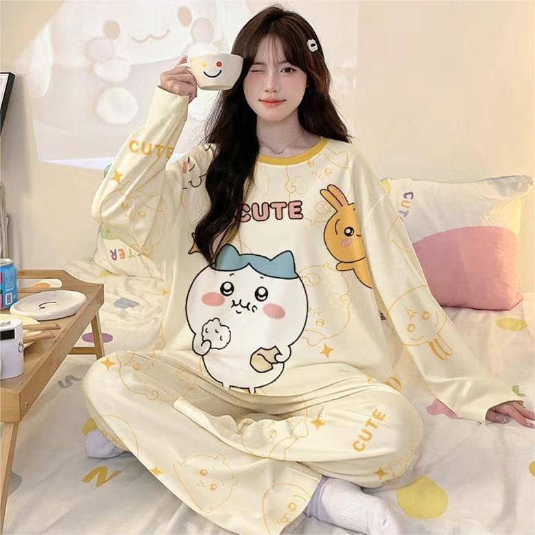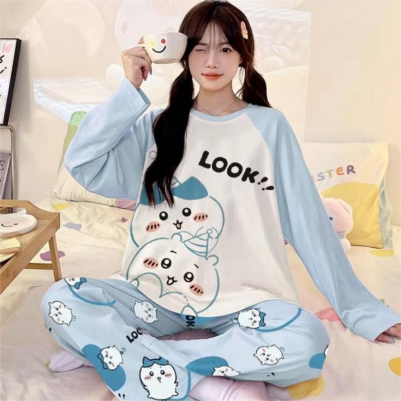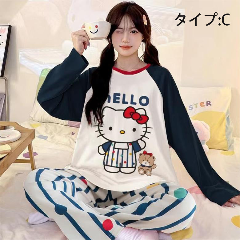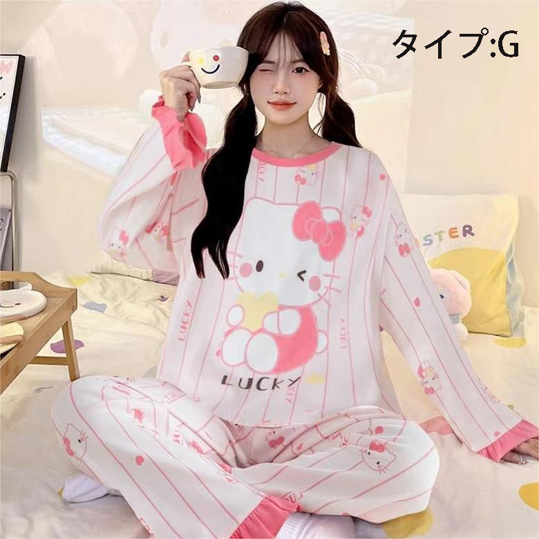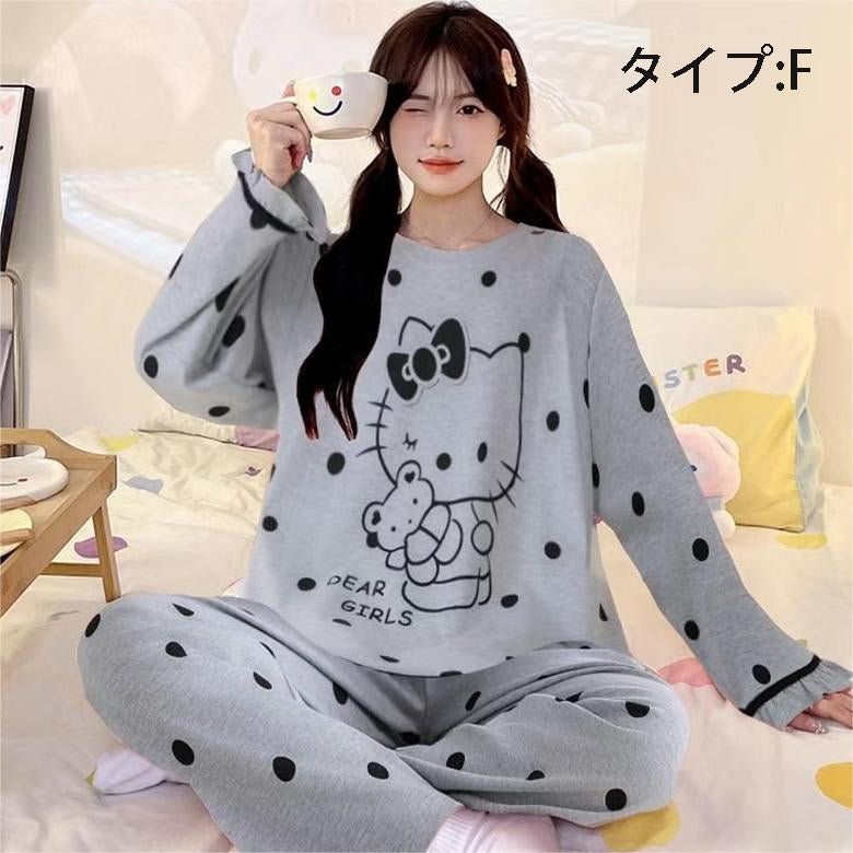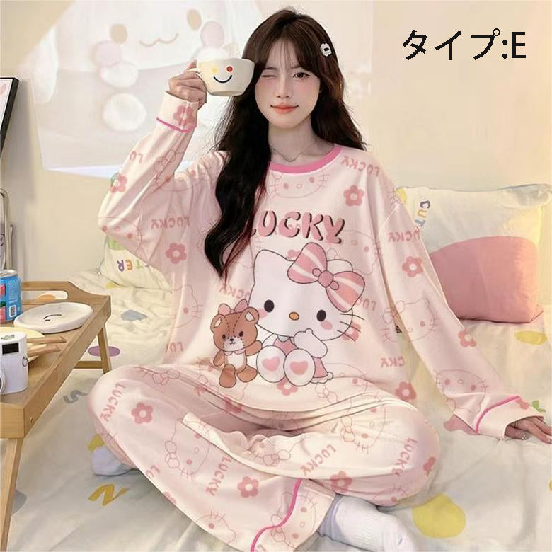 このルームウェアは、ゆるかわなデザインで、女性向け長袖長パンツセット。🌙 |