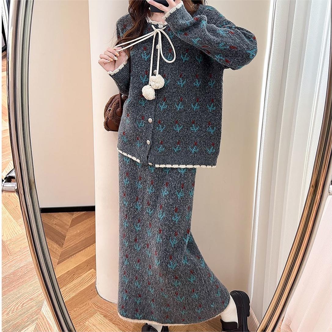 柔らかなカーディガンとシルエットが可愛いスカートのセットアップです💐 |