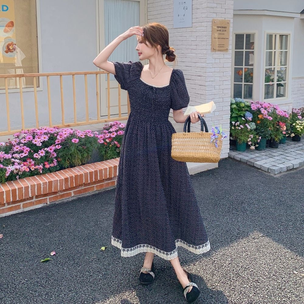 ほんのりロマンティック✨ ランタンスリーブと繊細なレースが、上品で甘い雰囲気を演出🌸 美しいシルエットに✨ シェイプアップ設計がウエストをすっきり見せ、優雅なラインを実現💫 ロング丈でフォーマルにもカジュアルにも🎀 華やかな一枚に♡ |