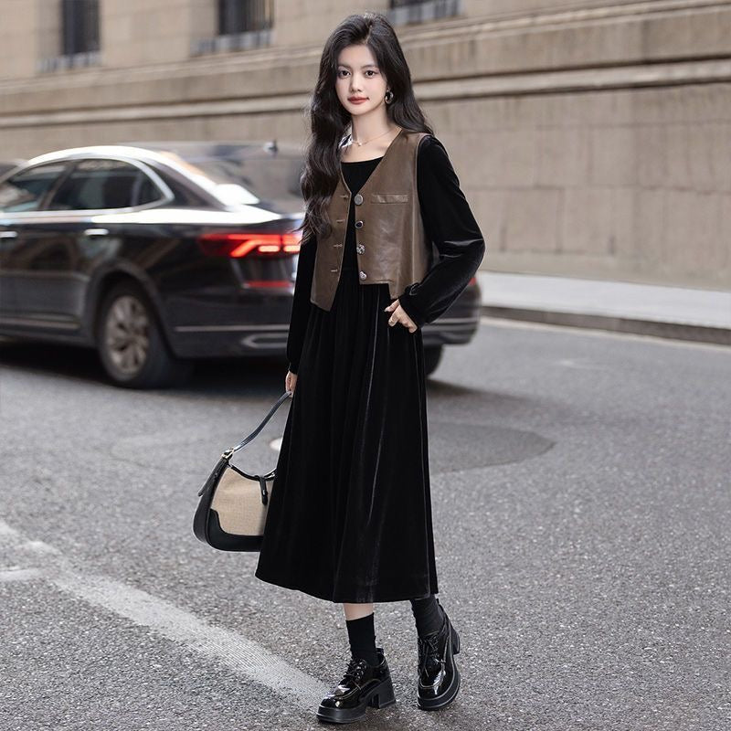 シングルボタンベストの利落なデザインが、上品な雰囲気を引き立て。✨ |