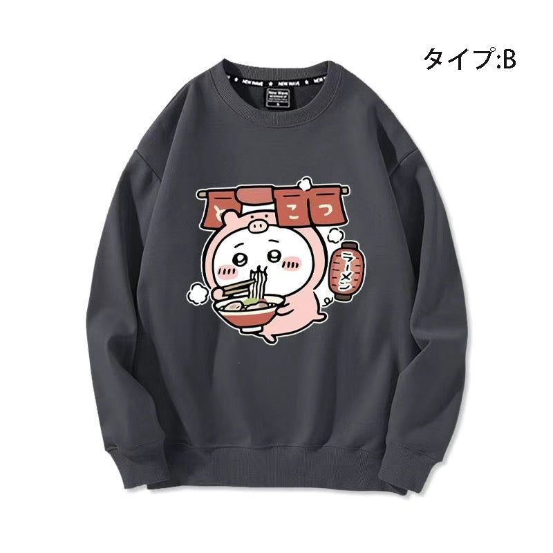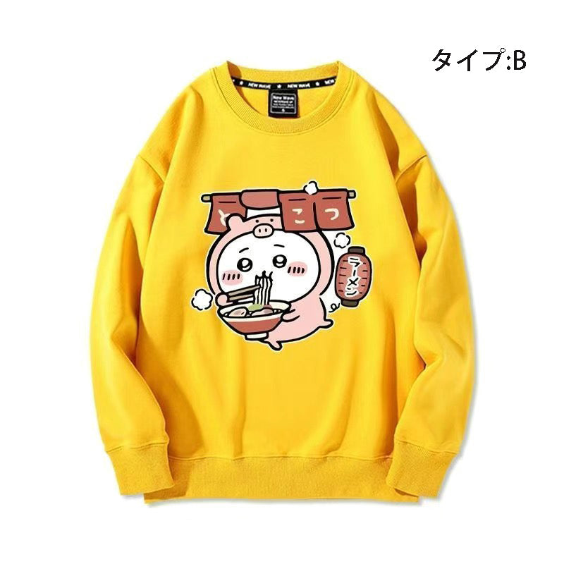 この長袖スウェットは、ユニセックスで着心地抜群!✨ 柔らかい素材で、リラックスした着ごこち。 デザインは、とんこつラーメンをテーマにしたゆるかわなプリント。ほっこりする萌え図案が特徴です。🍜 普段着にぴったりで、カジュアルな雰囲気を演出します。🌼 |