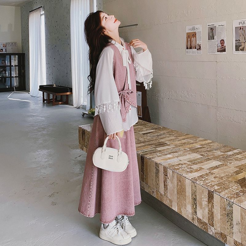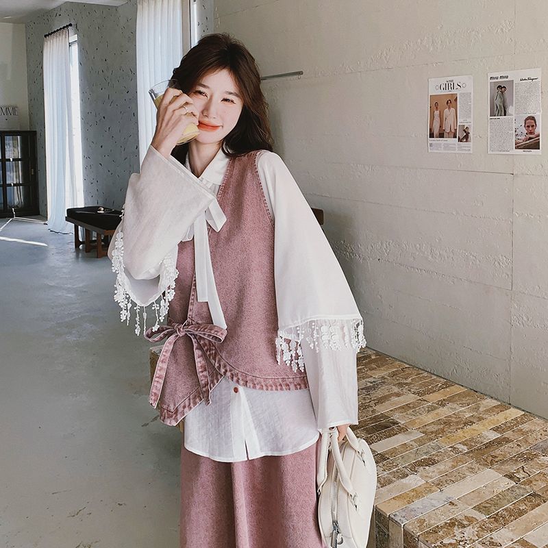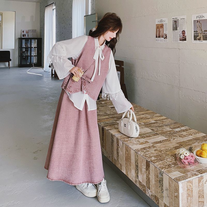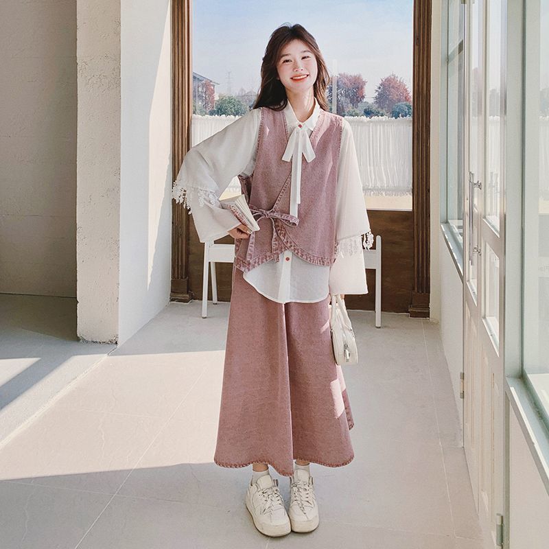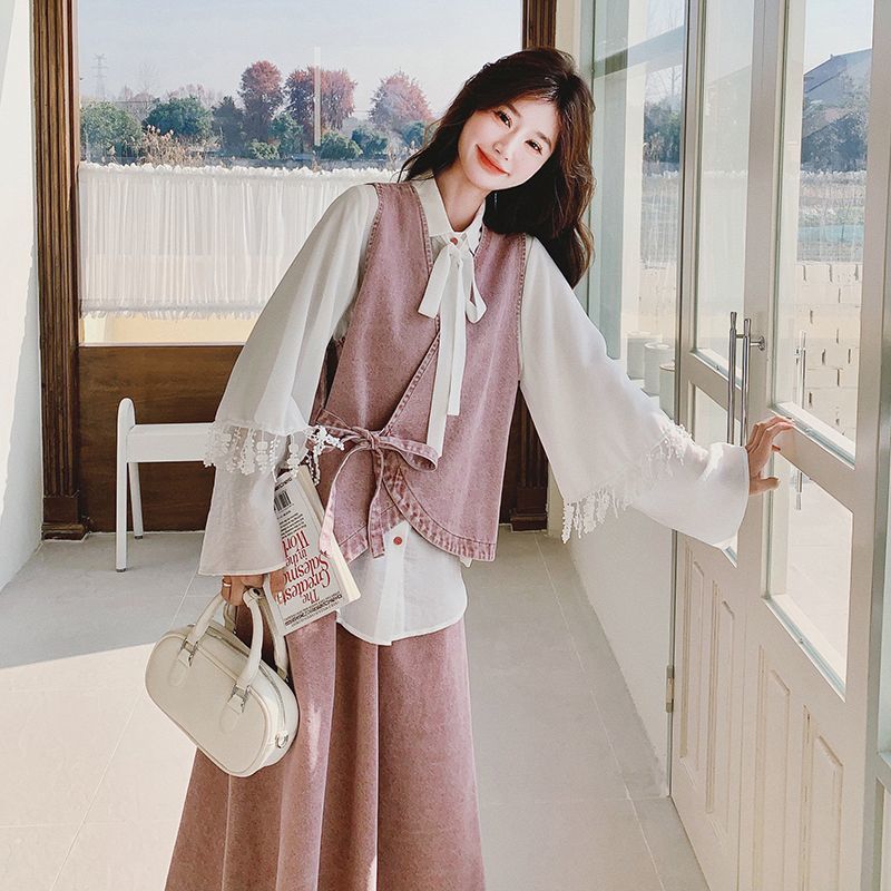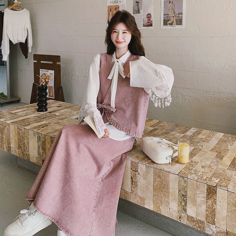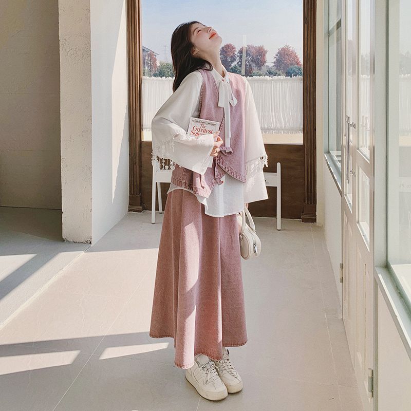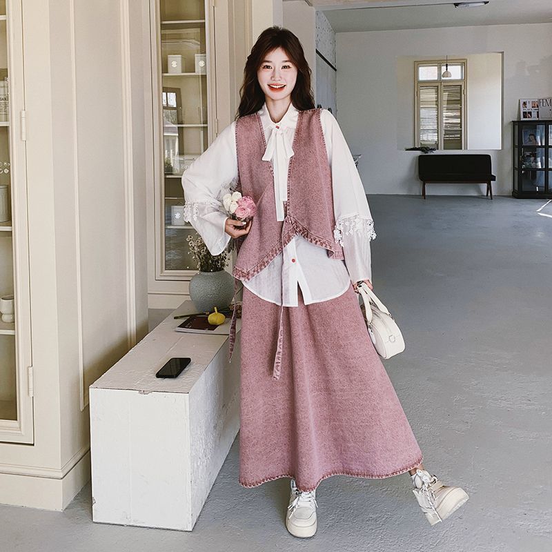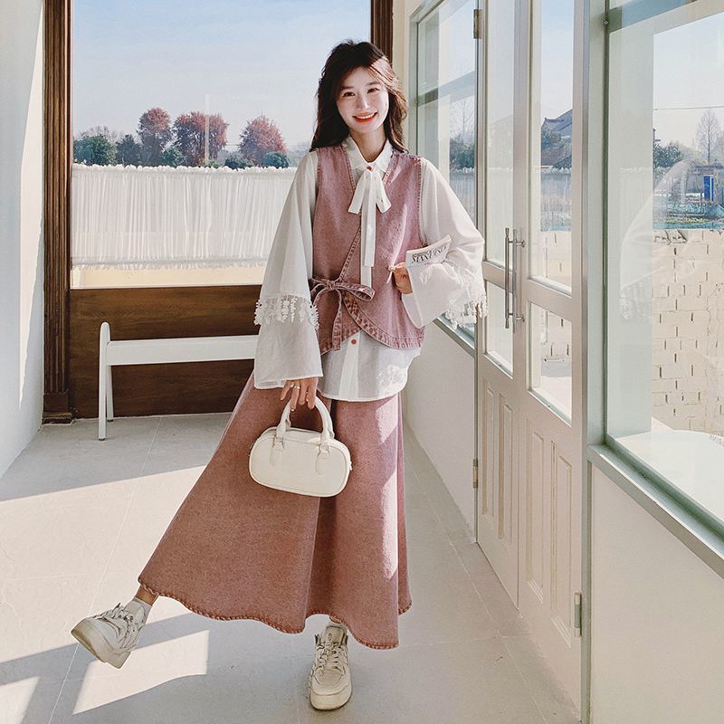 上品で清楚なシャツに、可愛らしいベストとスカートの3点セット✨ |